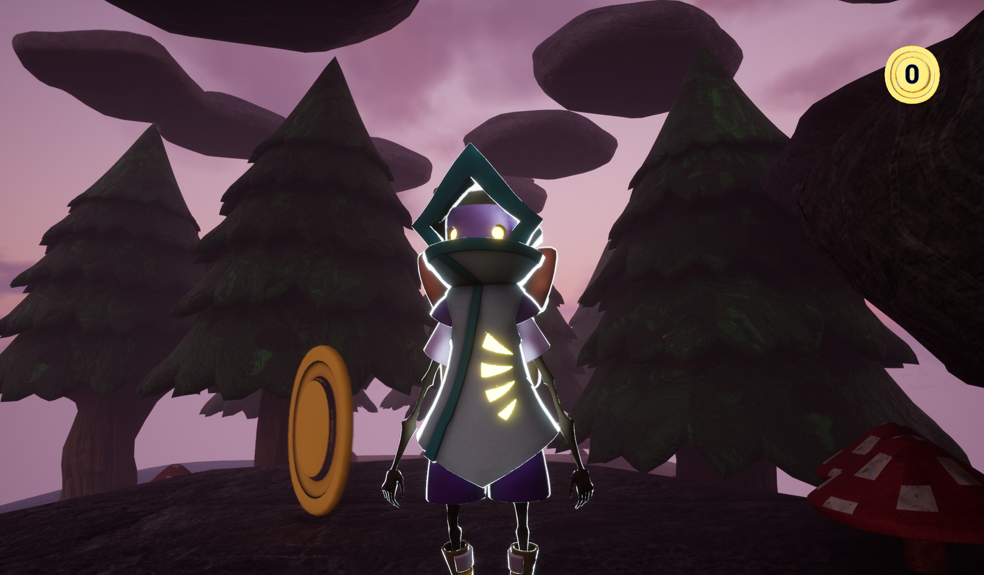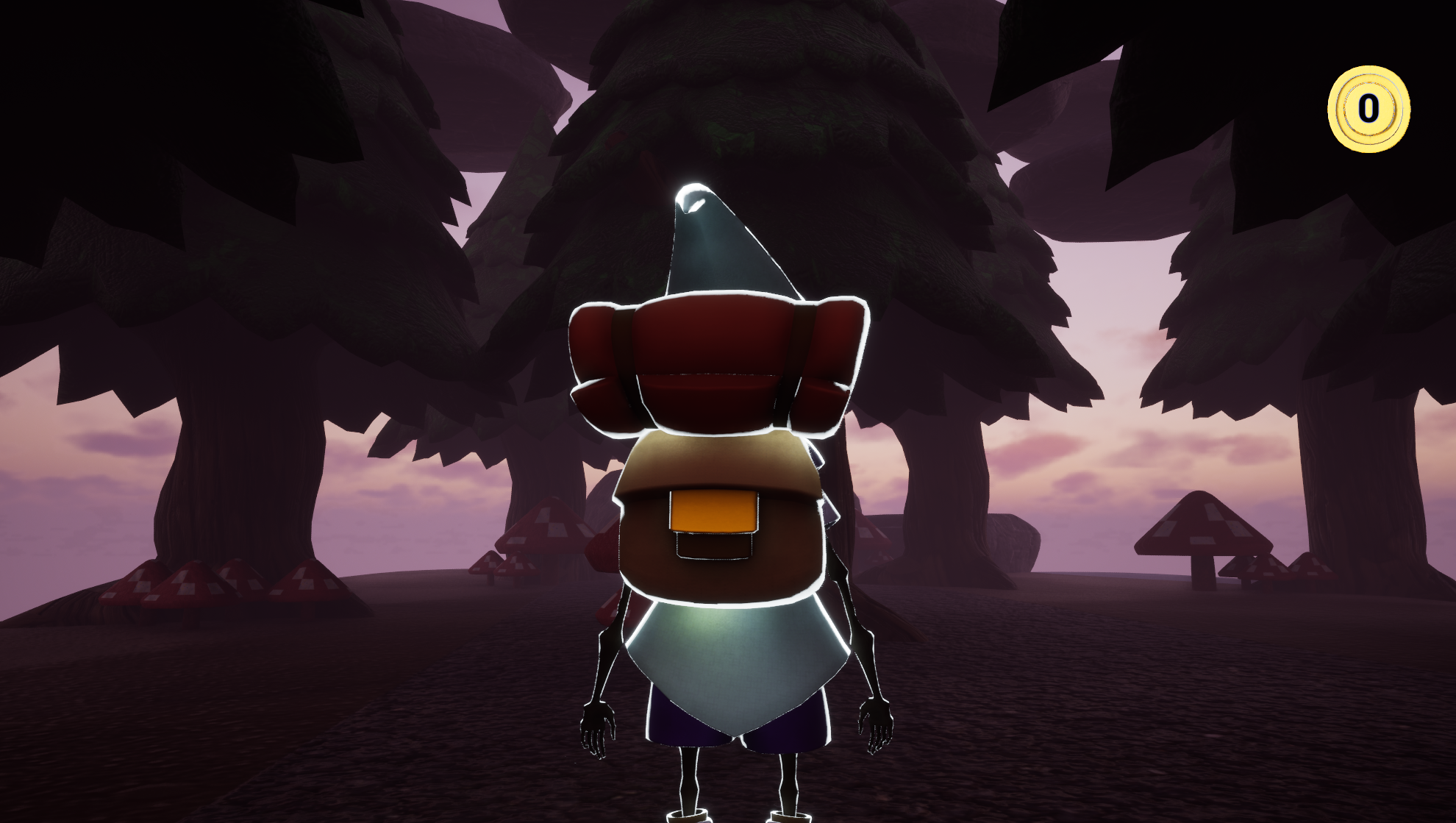 You play a forest person walking home after a long day. The path goes through a mushroom forest, filled with big and small mushrooms. Along the way, you collect coins lying on the ground. Each coin shows that someone else has walked this path before.