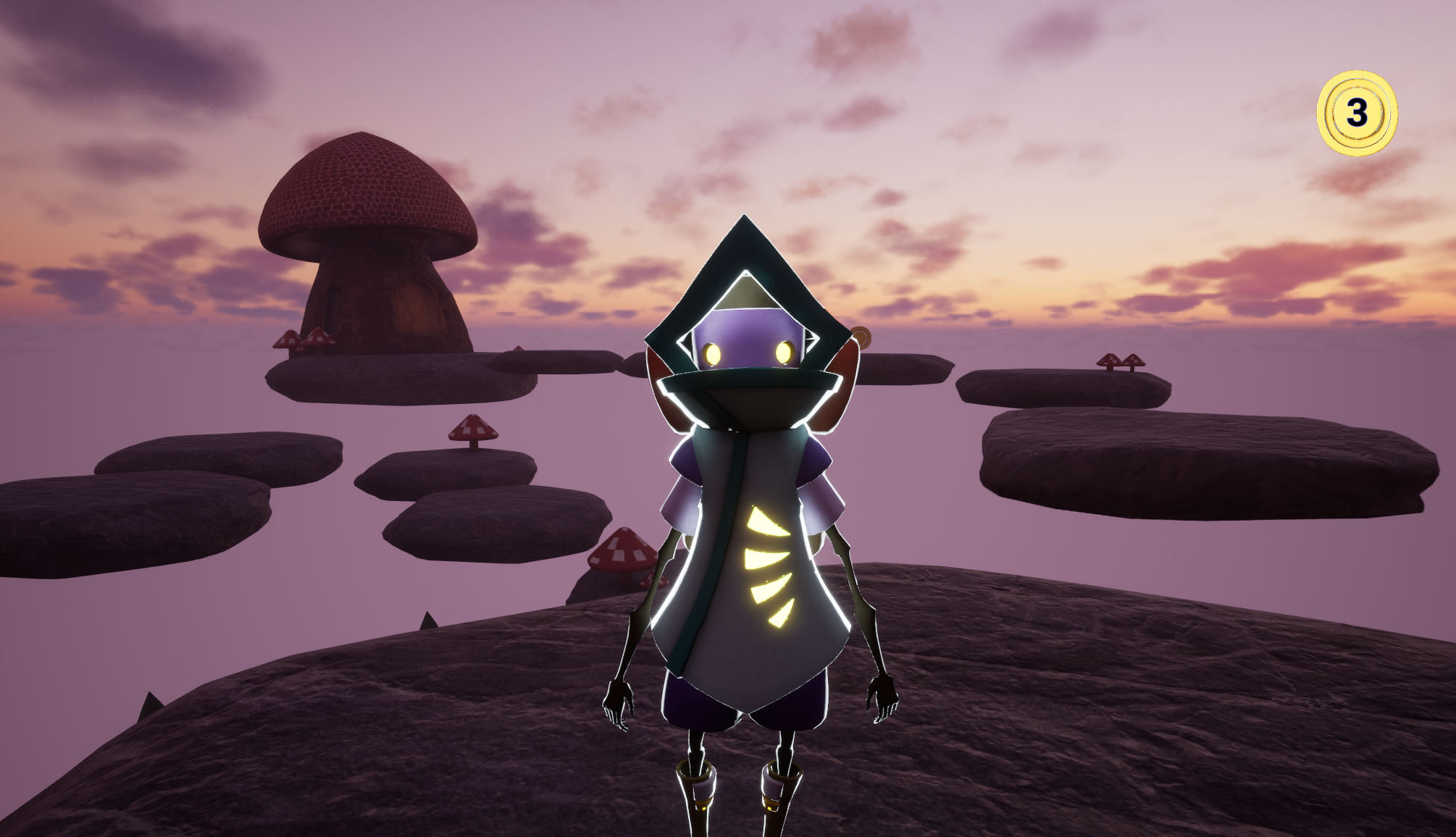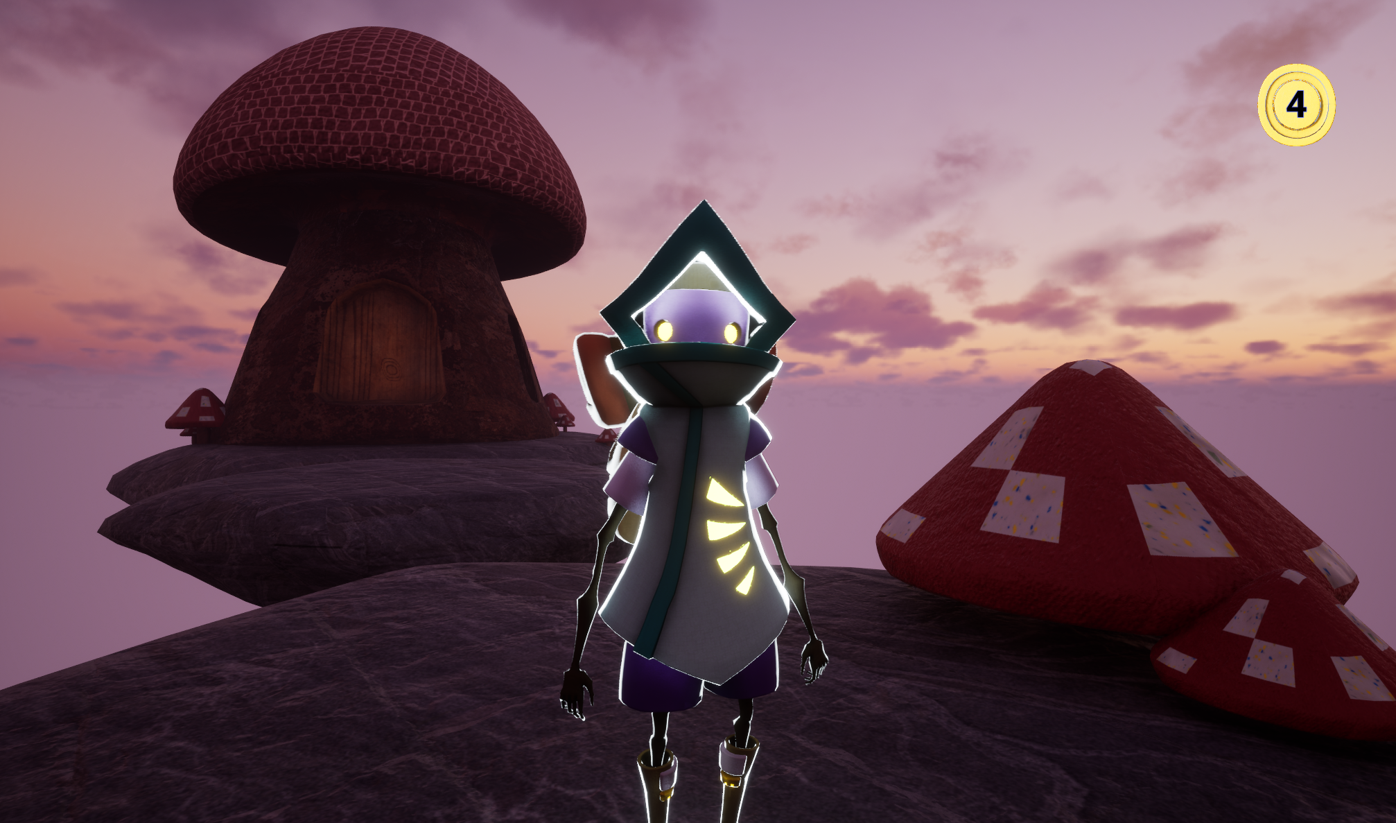 Du spielst einen Waldmenschen, der sich nach einem langen Tag auf den Weg nach Hause macht. Der Pfad führt durch einen Pilzwald, in dem riesige und kleine Pilze die Landschaft formen. Während du gehst, sammelst du verlorene Mützen ein, die im Wald verstreut liegen. Jede Mütze erzählt still, dass jemand hier vor dir war.